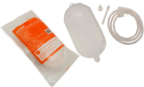 Bolsa aplicadora con 500 ml de Suspensión. Tubuladora con cánula para enema, tapa pico conectora y pinza